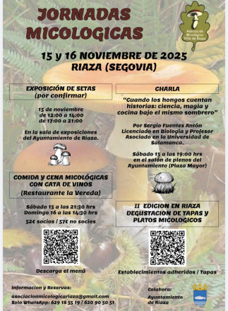 Organizadas por la Asociación Micológica Villa de Riaza, con la colaboración del Ayuntamiento de Riaza y los bares y restaurantes locales, estas jornadas combinan la divulgación científica con una exquisita oferta gastronómica en torno a las setas silvestres de la comarca.